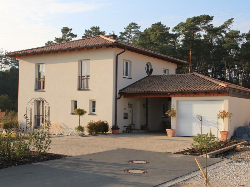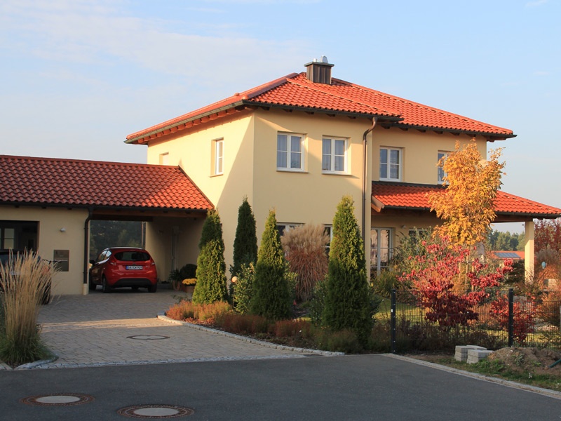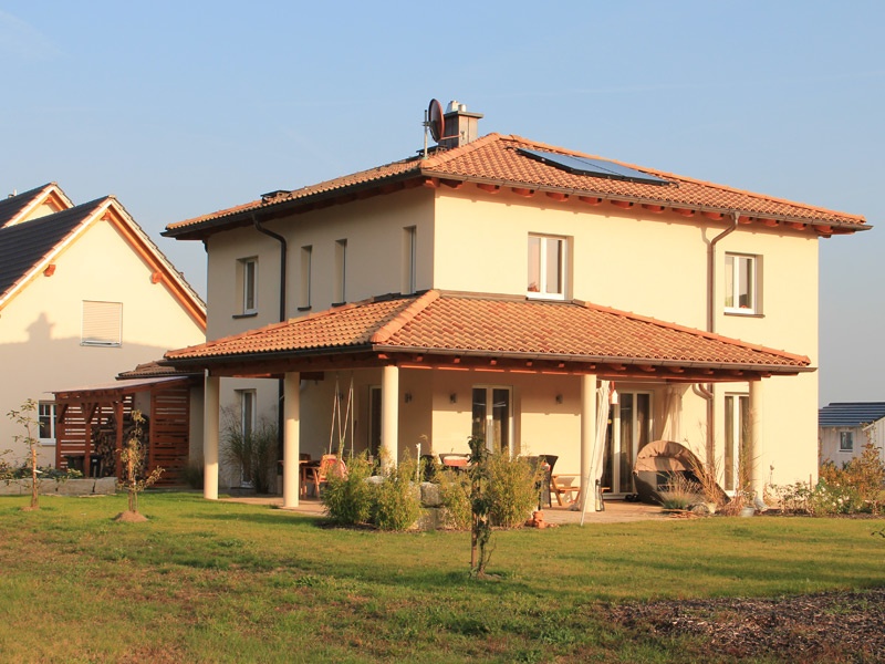 Das Haus mit Walm- oder Zeltdach mit 2 Vollgeschossen wird gerne als repräsentatives Stadthaus oder Stadtvilla bezeichnet. Das Interessante an dieser Form ist die Möglichkeit, durch gekonnten Einsatz von Material und Farben denselben Baukörper entweder mediterran oder klassisch geradlinig erscheinen zu lassen.