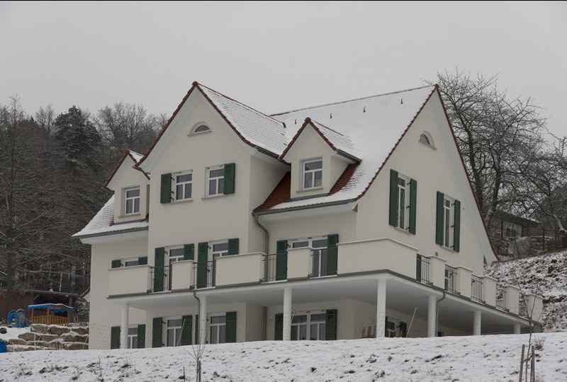 Das Haus mit Satteldach ist die klassische und am häufigsten anzutreffende Form unserer fränkischen Region. Dachaufbauten und Dacheinschiftungen oder ein Spiel mit Dachneigung und Kniestockhöhen verleihen dieser klassischen Form in der letzen Zeit einen komplett neuen Charme.